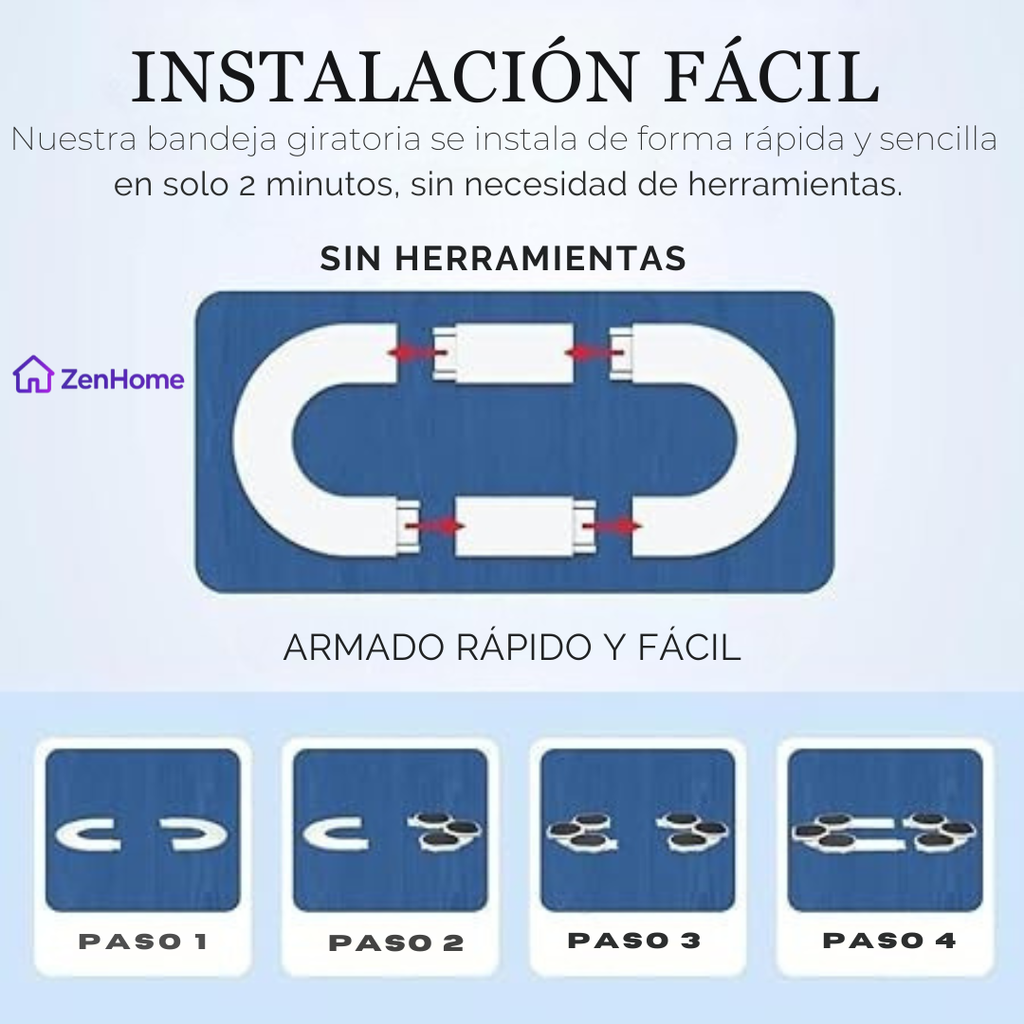 Gracias a su sistema de rotación suave, esta bandeja permite alcanzar todo lo que está sobre la mesa de forma rápida y cómoda, ideal para reuniones, comidas familiares y eventos.